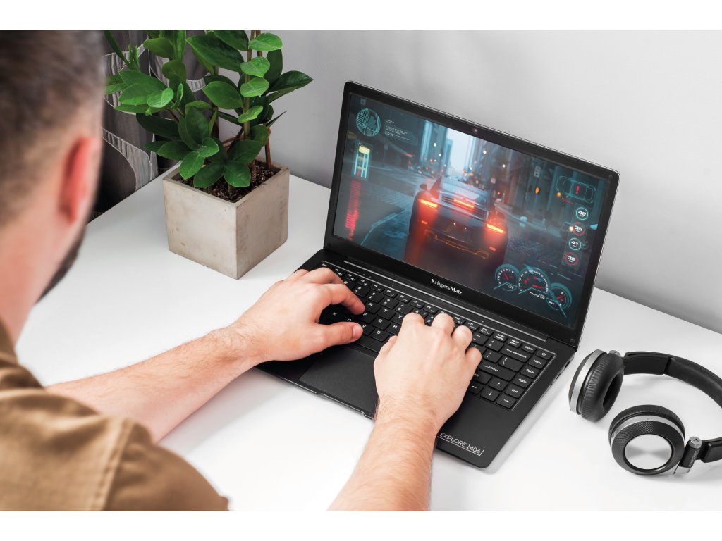 Carcasa stilată a ultrabook-ului Kruger&Matz Explore 1406 în culoarea negru mat îi conferă un aer de eleganță perfect adaptat atât spațiilor de birou, cât și interioarelor casnice. Important este că dispozitivul este foarte subțire și ușor, ceea ce cu siguranță crește confortul la transport.