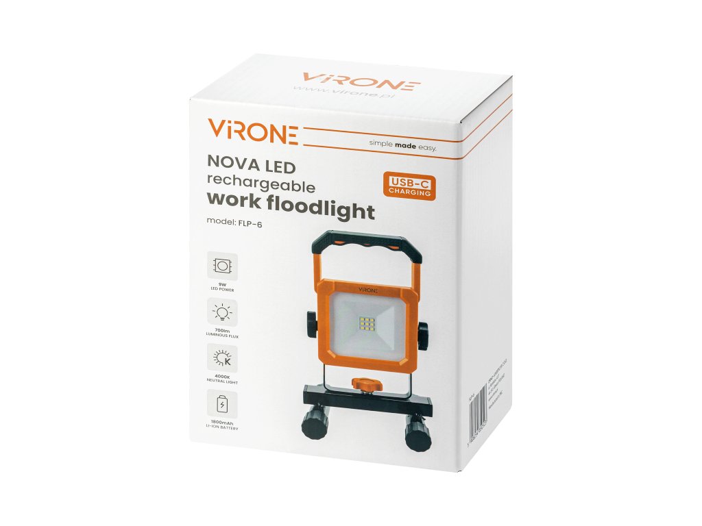 Proiectorul de lucru portabil cu LED NOVA reîncărcabil este o sursă de lumină compactă și eficientă, ideală pentru utilizarea în ateliere, garaje, beciuri sau în timpul renovărilor. Dispozitivul iluminează eficient spațiul de lucru, asigurând condiții confortabile atât în interior, cât și în afara clădirii.Proiectorul cu LED NOVA de 9W este destinat tensiunii de alimentare de 5V DC. Fluxul luminos de 700lm și un unghi larg al fasciculului permit o iluminare eficientă a punctului selectat, iar comutatorul încorporat permite o pornire rapidă și convenabilă. Temperatura de culoare de 4000K emană o lumină neutru plăcută, care nu obosește ochii.