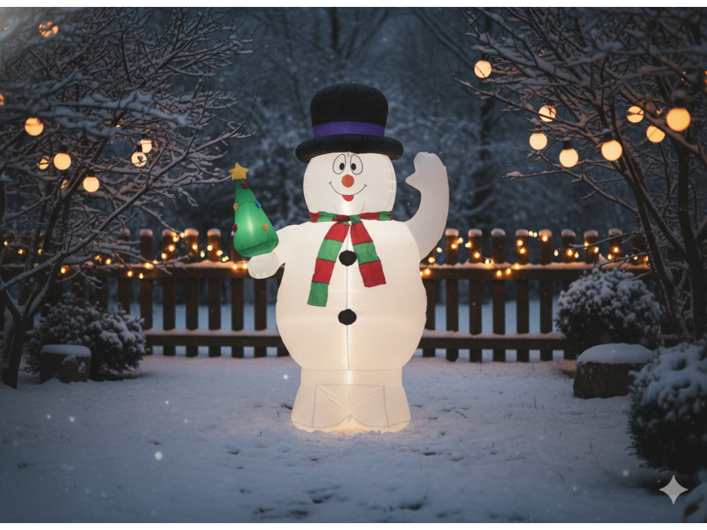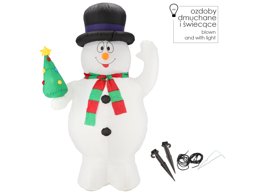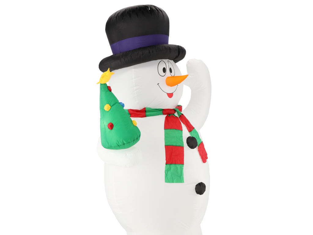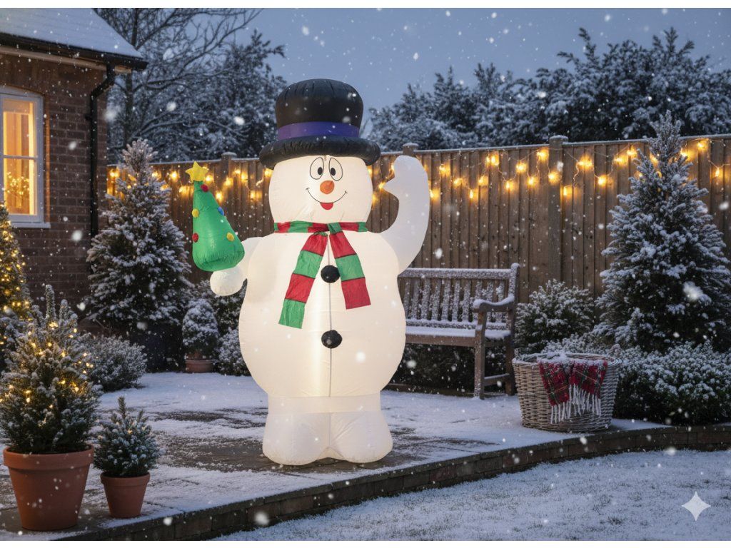 Alegeți calitate, efect și bucurie în dimensiuni XXL! Omul de zăpadă gonflabil LED 240 cm este un dar pentru ochi și suflet – ideal pentru orice persoană care iubește atmosfera de sărbătoare într-un stil mare.