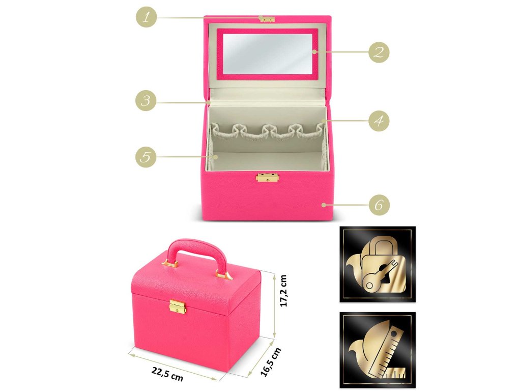 Acest organizator îndeplinește visele fetelor și nevoile femeilor. Suficient de spațios încât să devină prima cutie de valori a unei fete, și în același timp elegant ca o colecție de machiaj pentru o femeie adultă.