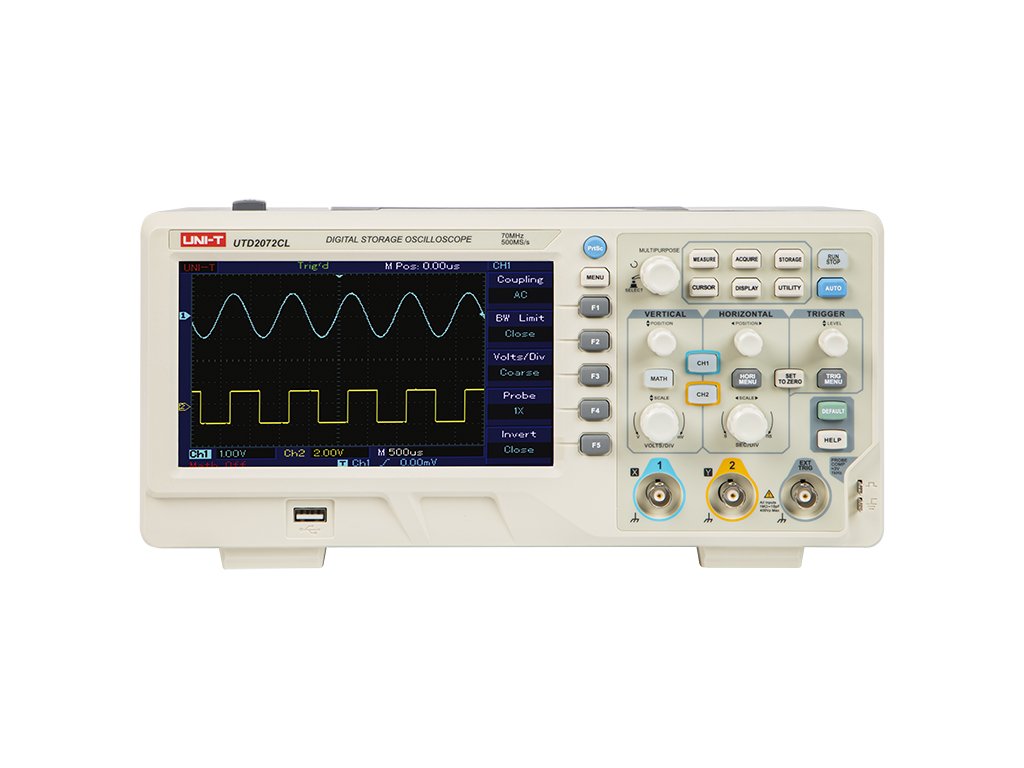 Dispozitivul tehnologic avansat al mărcii UNI-T permite monitorizarea formelor de undă și măsurarea parametrilor semnalelor variabile. Acest dispozitiv se deosebește de celelalte prin posibilitățile largi de măsurare și testare. Ecranul color mare și clar de 7 inci al osciloscopului oferă o imagine clară și distinctă a oscilogramei. Osciloscopul este echipat cu o funcție AUTO care setează automat dispozitivul pentru măsurarea corespunzătoare.