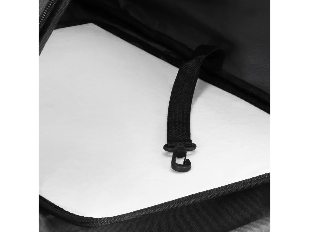 - Pe unul dintre mânerele pentru mână este cusut un suport cu Velcro pentru a uni ambele mânere pentru transport mai confortabil.