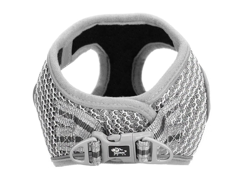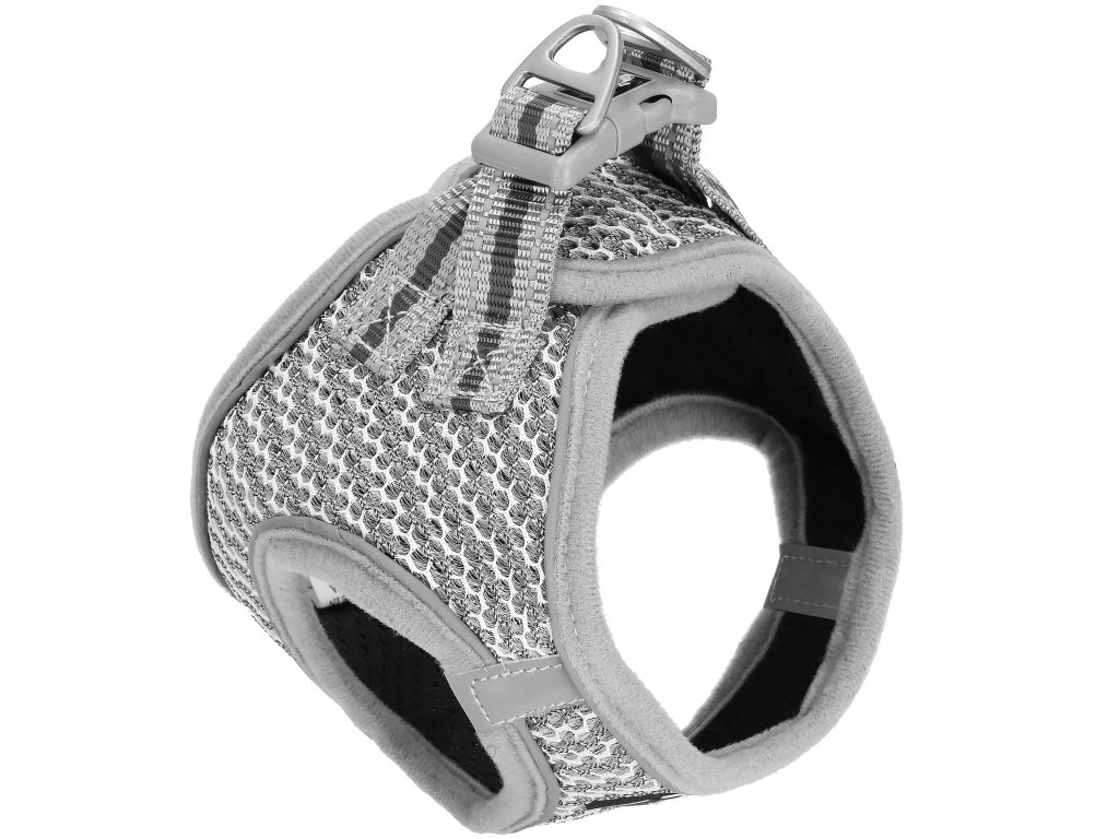 - Margini reflectorizante pe întreg hamul și 2 elemente reflectorizante mai mari în partea din față a hamului
