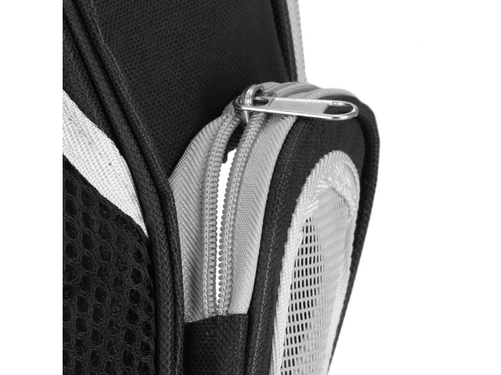 - Peretele frontal al rucsacului realizat din PVC tare, transparent, detașabil cu ajutorul unui fermoar cu două direcții.