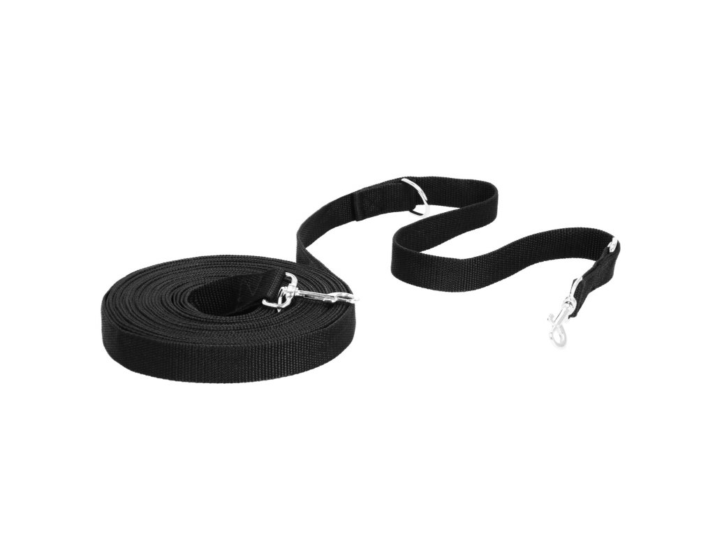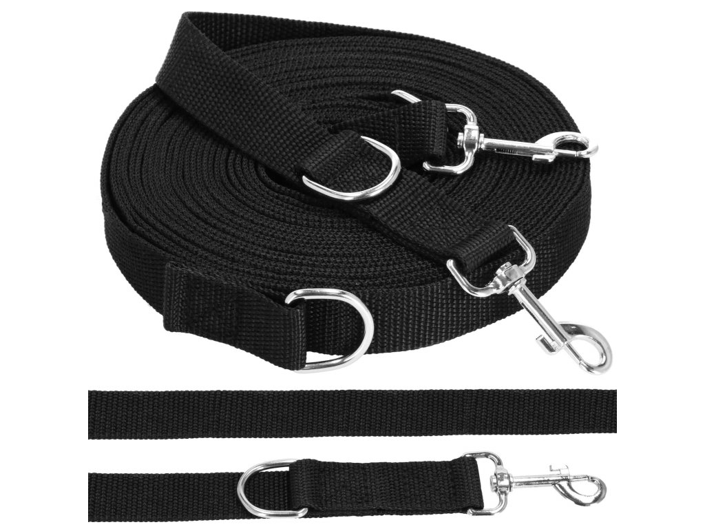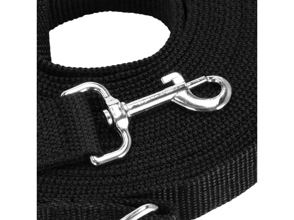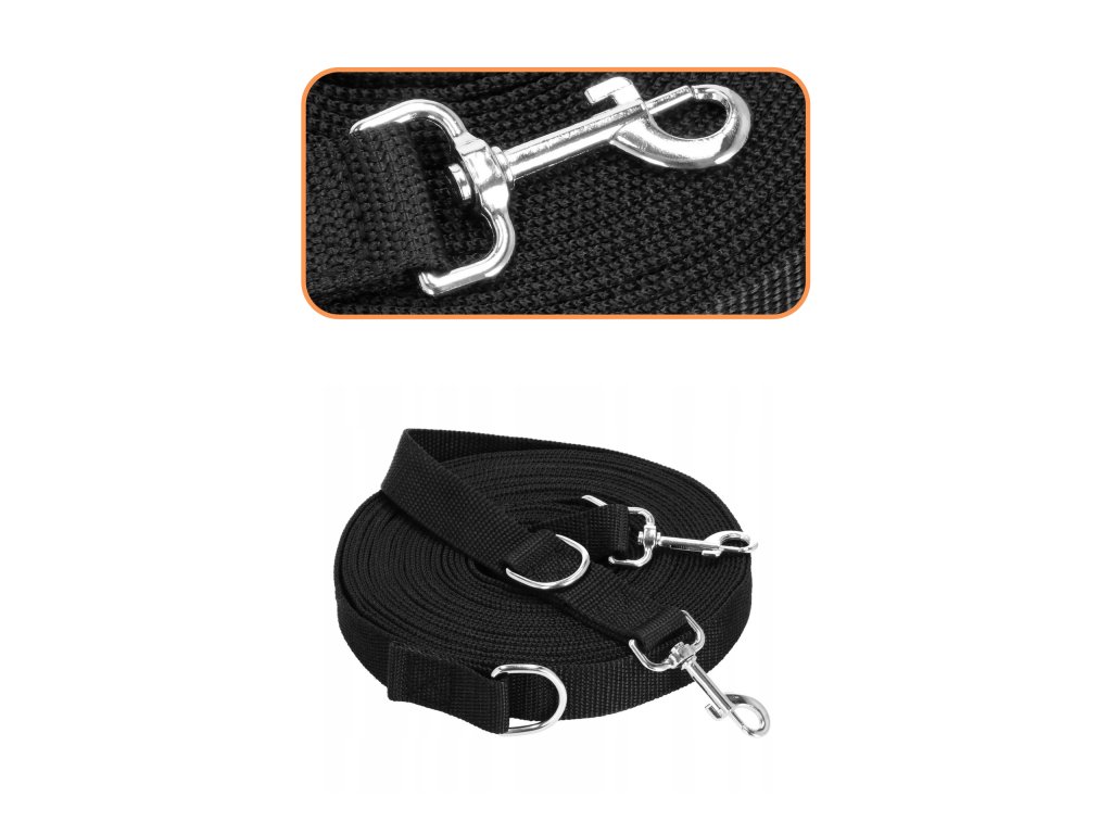 - 2 inele D metalice - prinderea carabinierei de inelul D formează un mâner - o buclă cu lungimea de 30 cm, al doilea inel D este situat după carabinieră - posibilitatea de a atașa de ex. a doua lesă