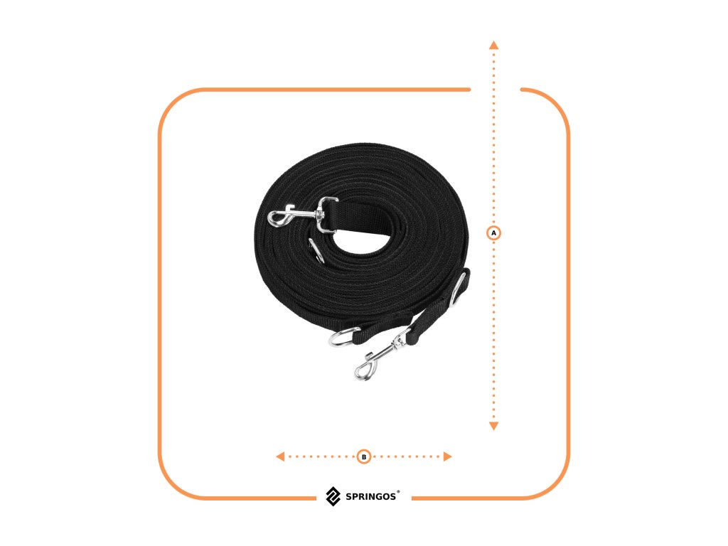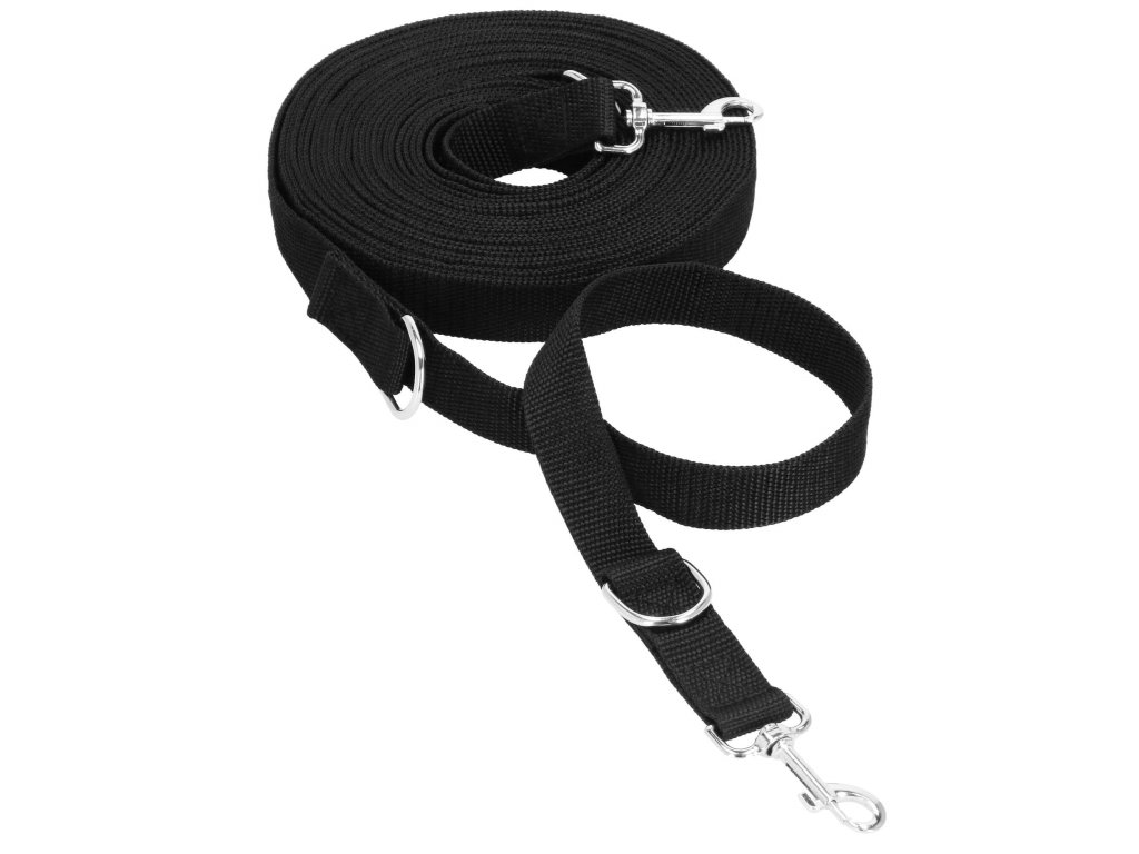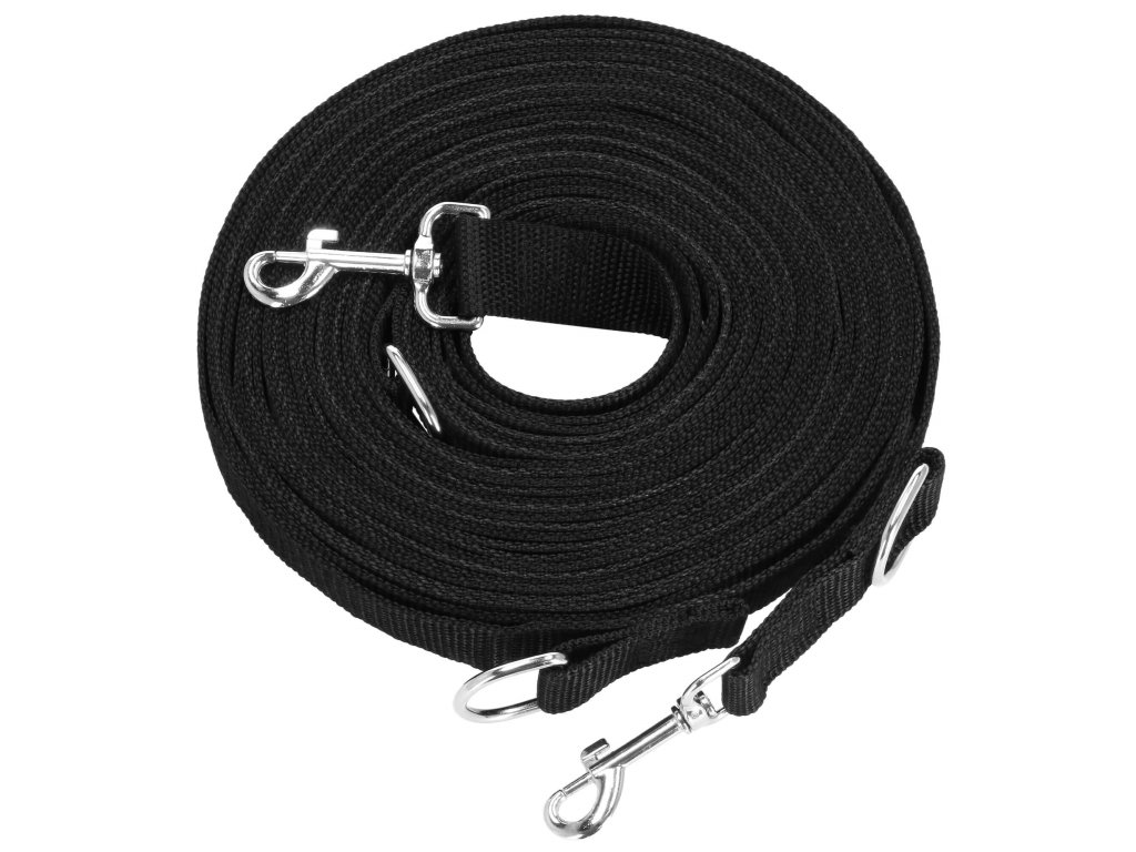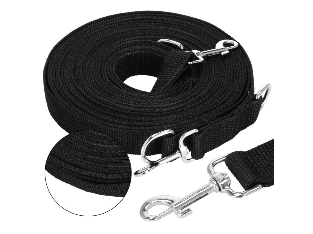 - 2 inele D metalice - prinderea carabinierei de inelul D formează un mâner - o buclă cu lungimea de 30 cm, al doilea inel D este situat după carabinieră - posibilitatea de a atașa de ex. a doua lesă