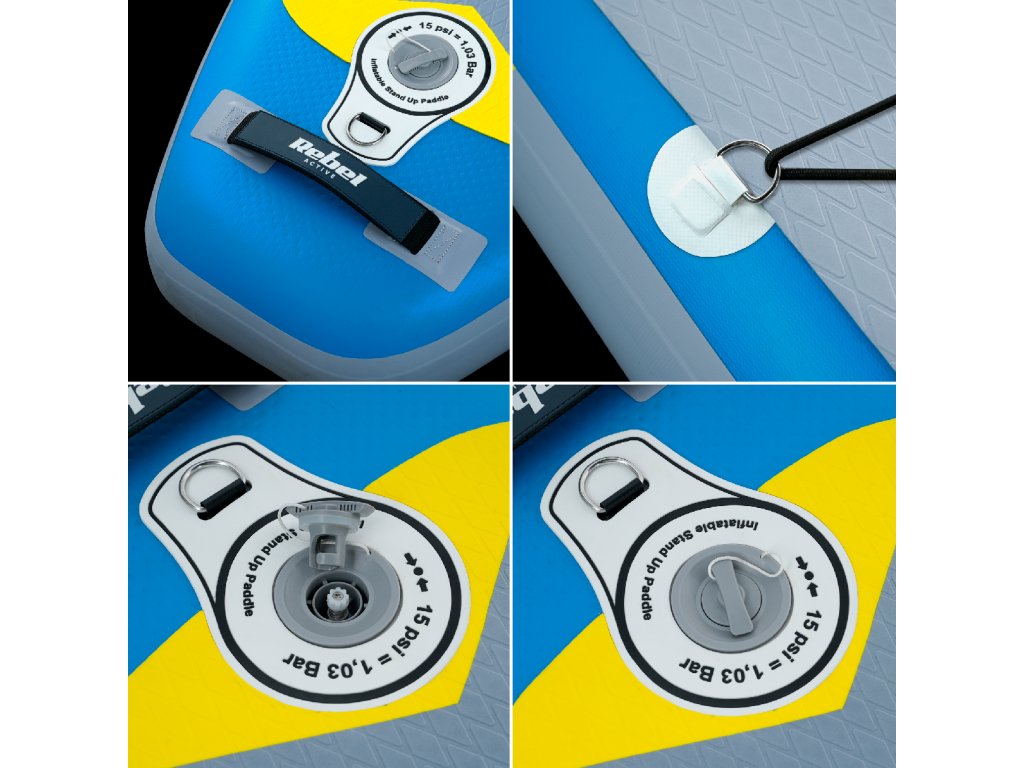 Paddleboard-ul Rebel Active se remarcă printr-o construcție solidă și stabilă fabricată cu tehnologia drop-stitch. Aceasta îți permite să te deplasezi în siguranță pe apă, indiferent de nivelul tău de abilități, fie că ești în picioare sau așezat. Placa antiderapantă, acoperită cu spumă EVA de 3 mm, oferă o aderență excelentă, făcând chiar și cel mai intens paddleboarding o joacă de copii.