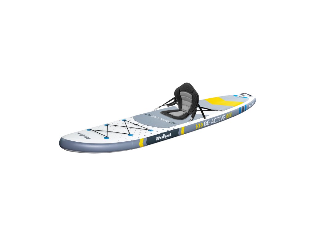 Pentru și mai mult confort și stabilitate la vâslit, placa Rebel Active SUP este echipată cu un scaun confortabil cu spătar, care poate fi ușor atașat și îndepărtat conform preferințelor tale. Această soluție permite odihna confortabilă în timpul excursiilor mai lungi pe apă. Așază-te, relaxează-te și bucură-te de priveliști și de liniștea naturii.