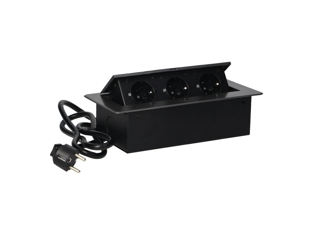 Panou cu prize 3x Schuko, grafit, cablu de 1,5 m