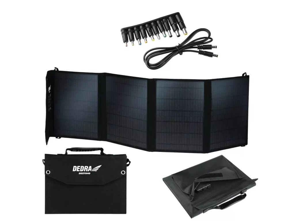 Panoul solar portabil DEZT0040 este un produs pentru încărcarea stațiilor electrice cu o putere de până la 500 W, precum și a altor dispozitive, cum ar fi tablete și smartphone-uri.