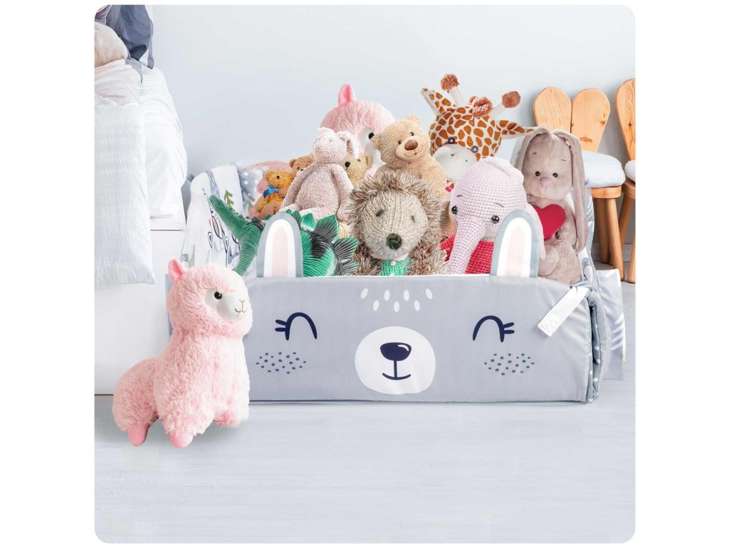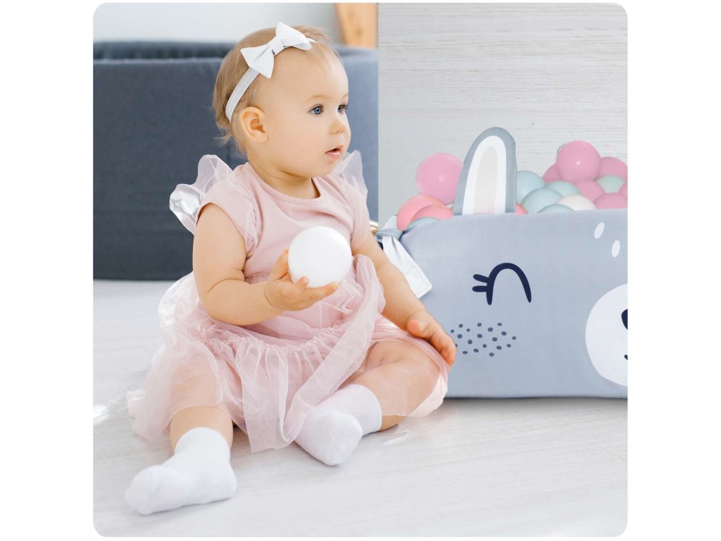 Spatele pernei este realizat din țesătură minky, fiind extrem de moale și plăcută. La pernă se pot atașa jucării. Urechile ursulețului foșnesc!