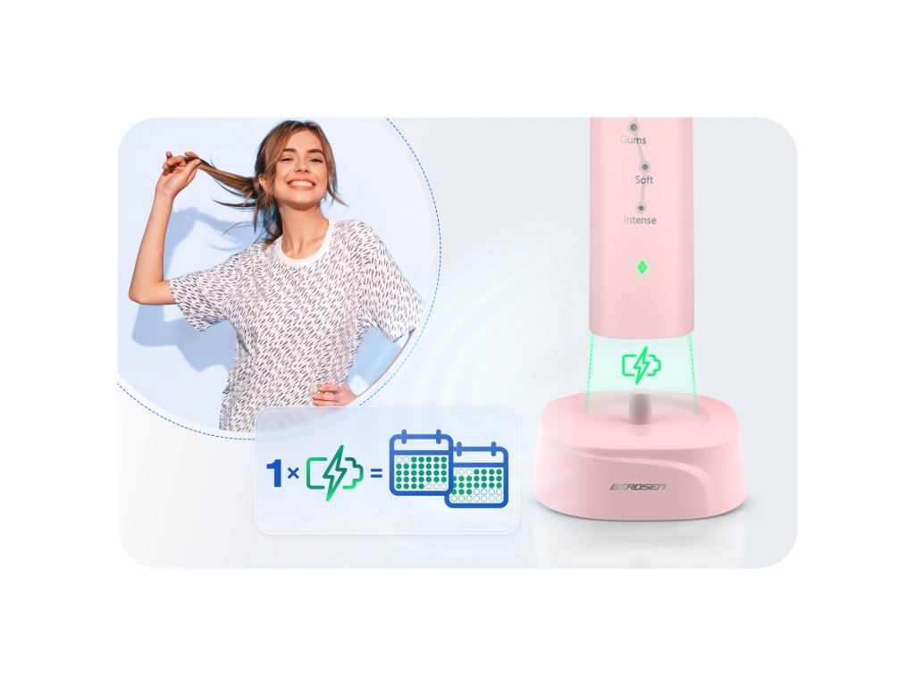 - oferă săptămâni de funcționare cu o singură încărcare, asigurând confort și fiabilitate zilnică. Este un dispozitiv care îmbină inovația cu funcționalitatea pentru a avea grijă de zâmbetul tău la cel mai înalt nivel!