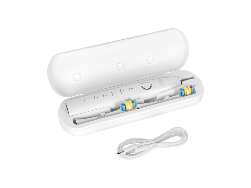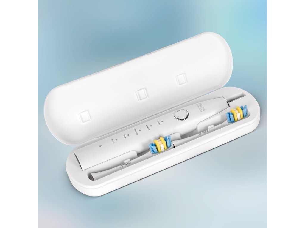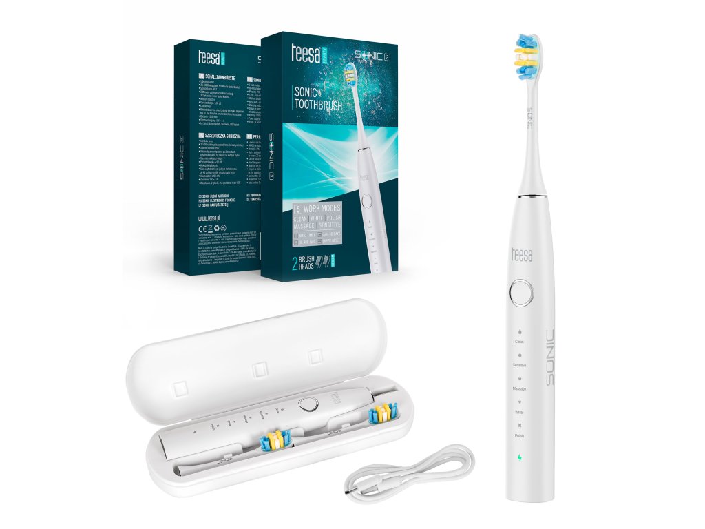 Periuța sonică Teesa Sonic 2 nu este doar un dispozitiv, ci un pachet întreg de accesorii funcționale. În cutie vei găsi 2 capete interschimbabile, un etui de călătorie și un cablu USB-C – tot ce ai nevoie pentru a începe imediat. Este soluția ideală pentru cei care caută o periuță de dinți sonică atât pentru uz casnic, cât și pentru călătorii.