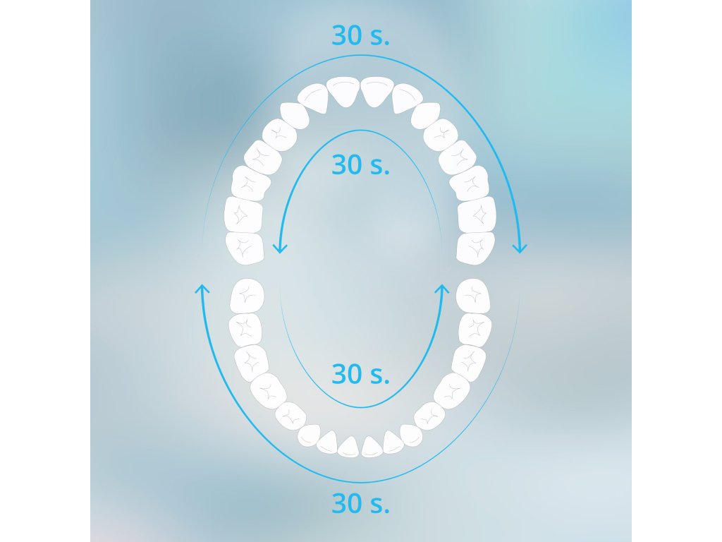 Oprire automatăUn cronometru inteligent vă notifică la fiecare 30 de secunde pentru a schimba zona de periaj, ajutând astfel la curățarea uniformă a întregii cavități bucale. După două minute, periuța se va opri automat, asigurând timpul optim pentru periajul dinților.