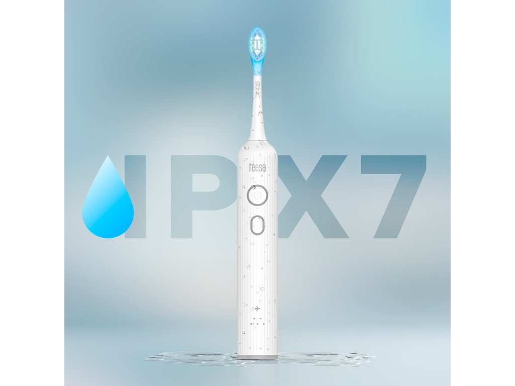 Periuță de dinți rezistentă la apă Teesa Sonic Elite are clasa de protecție IPX7, ceea ce înseamnă că o puteți folosi fără griji sub duș sau puteți să o spălați sub apă curgătoare. Este confort și siguranță în utilizare în orice condiții.