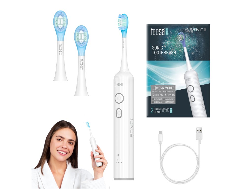 Periuță de dinți sonică Sonic Elite Periuța de dinți sonică Teesa Sonic Elite reprezintă o inovație în igiena orală zilnică. Comparativ cu periuțele tradiționale, oferă o curățare mai eficientă, îndepărtează mai multă placă dentară și ajunge în locuri greu accesibile. Teesa Sonic Elite este o periuță sonică profesională care vă asigură dinți sănătoși și albi în cel mai confortabil mod.