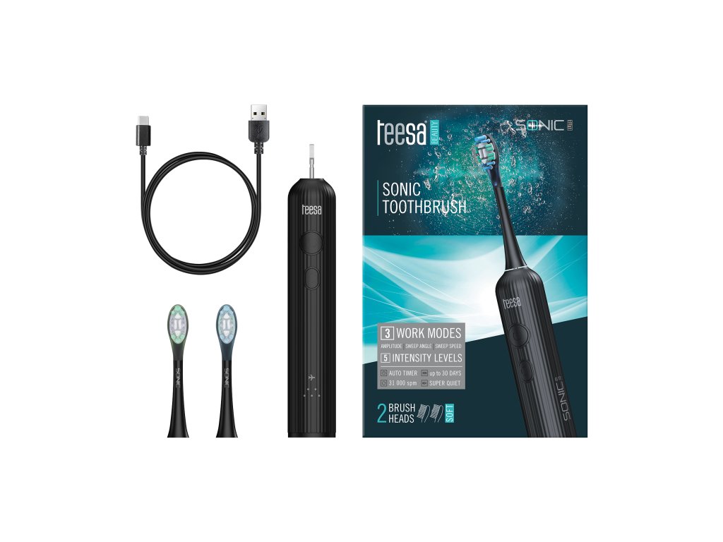 Periuța de dinți sonică Sonic Elite Periuța de dinți sonică Teesa Sonic Elite este o inovație în igiena orală zilnică. În comparație cu periuțele tradiționale, oferă o curățare mai eficientă, îndepărtează mai mult tartru și ajunge la locurile greu accesibile. Teesa Sonic Elite este o periuță sonică profesională care asigură dinți sănătoși și albi în cel mai confortabil mod.