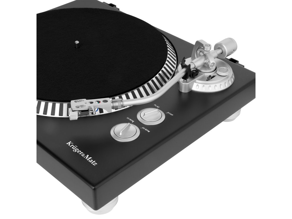 Pick-up-ul Kruger&Matz folosește un sistem cu ac interschimbabil de la Audio-Technica, cunoscut fiecărui audiofil. Așadar, dacă ascultați muzică destul de intens și aveți nevoie să înlocuiți acul, puteți achiziționa oricând accesorii specializate de la Kruger&Matz.