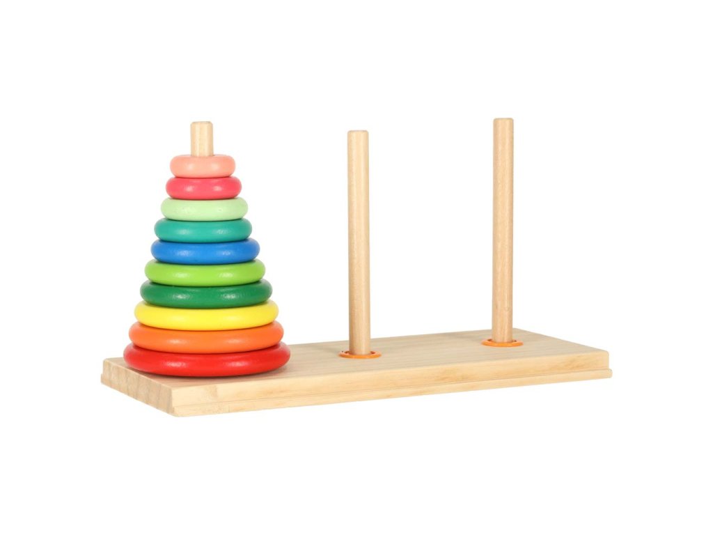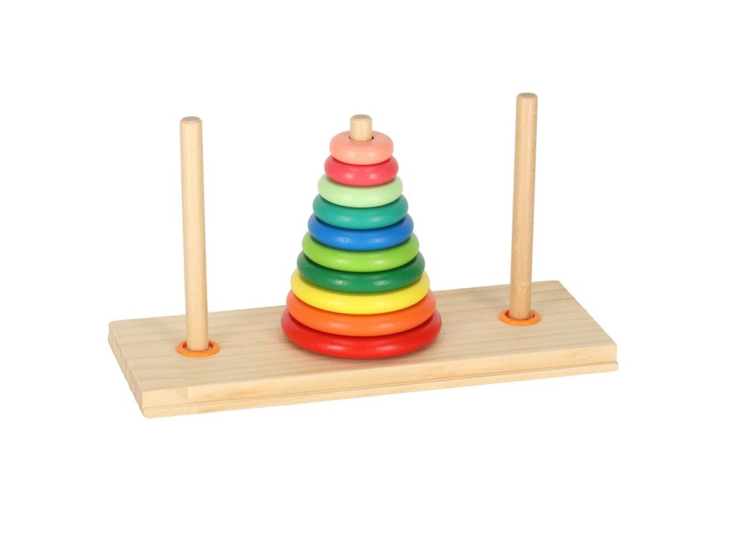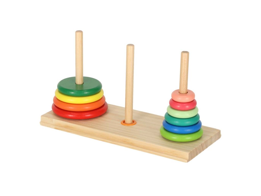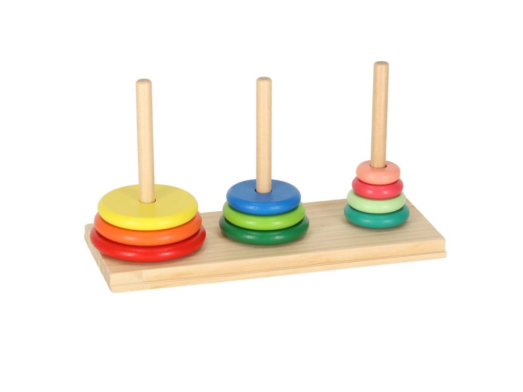 REGULILE JOCULUI: toate discurile aranjate în ordine de la cel mai mare la cel mai mic ar trebui să se mute de la primul turn la ultimul, folosind turnul din mijloc. Pe ultimul turn, discurile ar trebui să fie din nou aranjate de la cel mai mare la cel mai mic. Se poate muta întotdeauna doar un disc, respectând regula că un disc mai mic se pune întotdeauna pe unul mai mare.