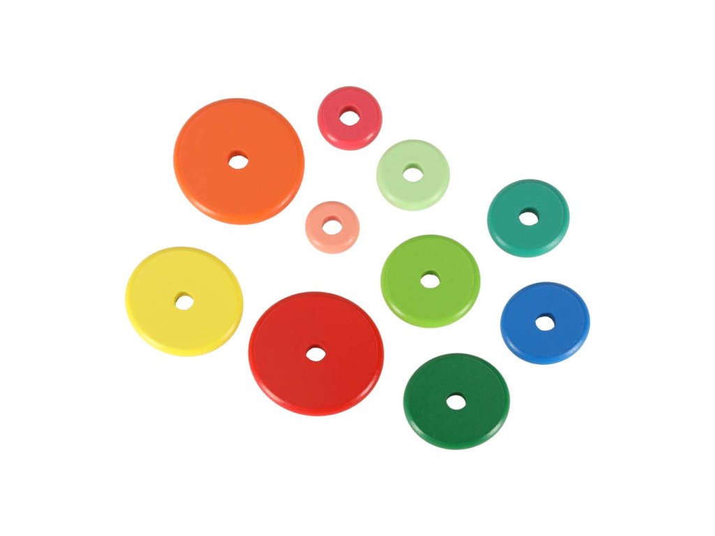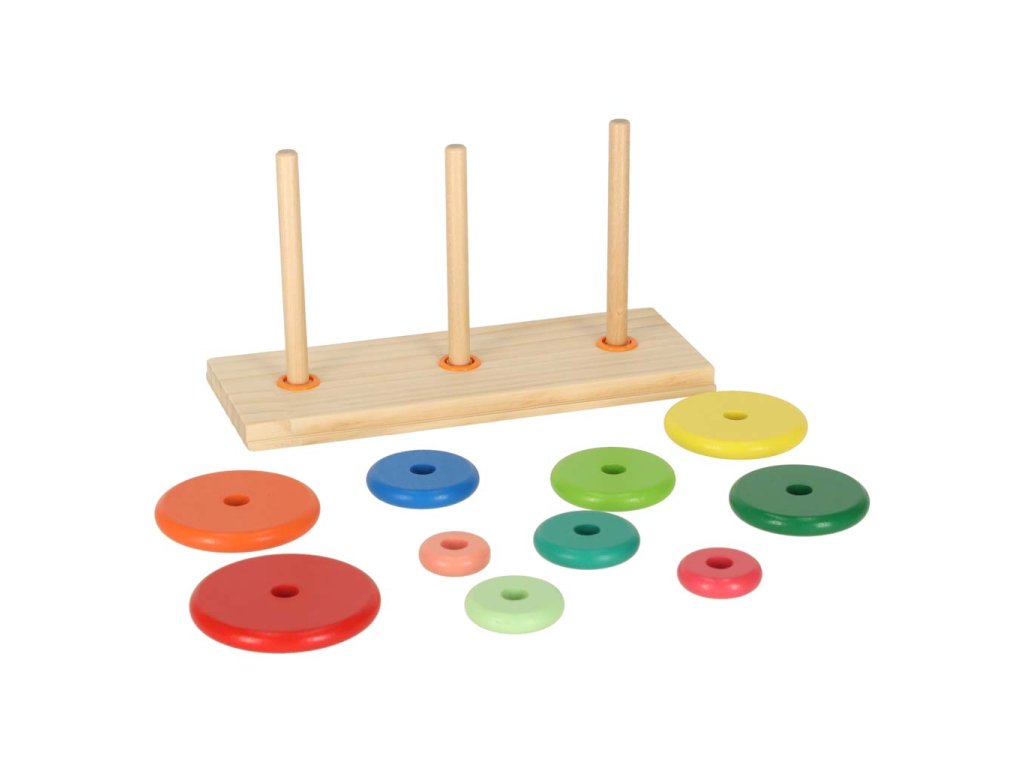 Plasarea discurilor pe stâlpi ajută la dezvoltarea abilităților manuale și a coordonării mână-ochi.