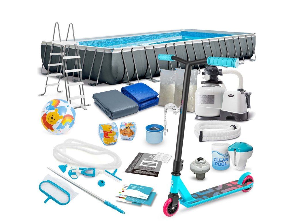 Piscină de grădină cu cadru 975 x 488 x 132 cm 21 în 1 INTEX 26374 + trotineta GRATUIT