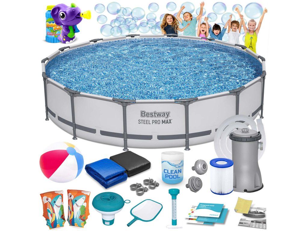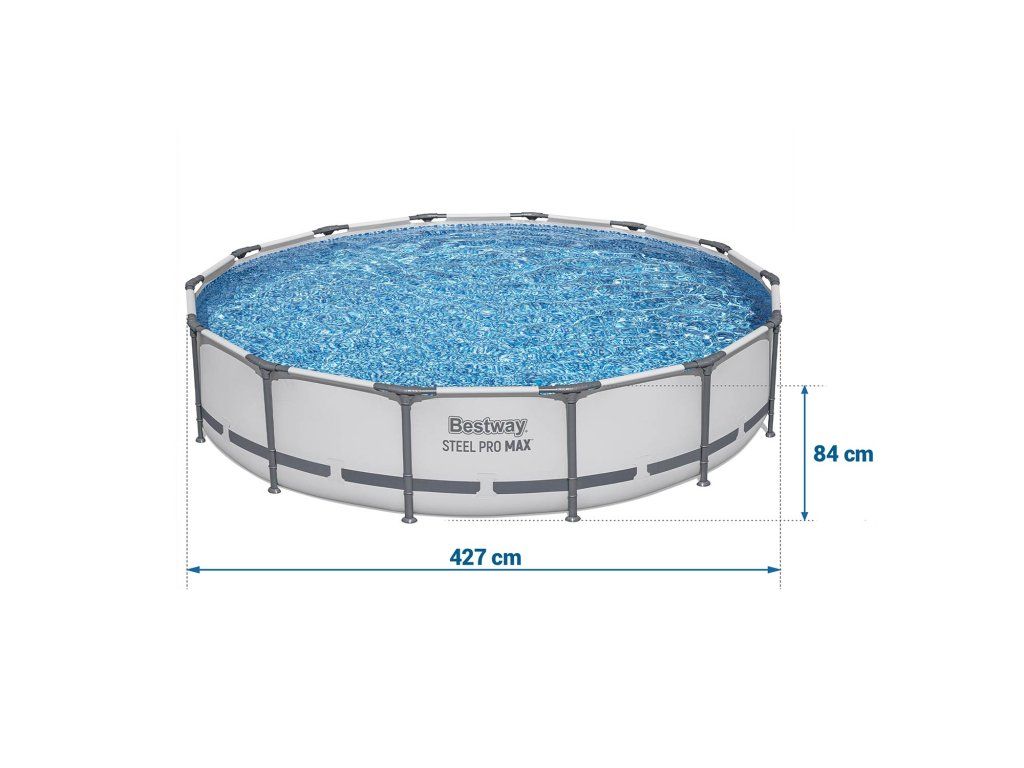 Piscină de grădină cu structură metalică 427 x 84 cm 17 în 1 Bestway 56595 + mașinuță de baloane CADOU