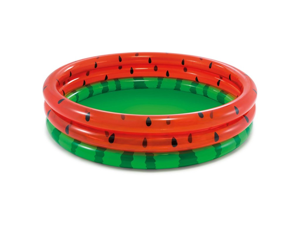 Piscina gonflabilă colorată Intex - este o piscină gonflabilă clasică, realizată din material de vinil rezistent, ale cărei pereți au fost creați din trei inele gonflabile stilizate pentru a semăna cu pepenele verde.