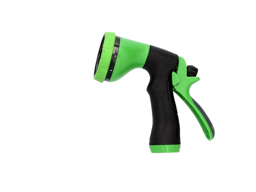 Pistolă din plastic, 8-funcțională pentru udare. Permite ușoară udare cu diverse jeturi de apă, de la concentrat la ceața dispersată. Schimbarea jetului de apă într-un mod foarte simplu și confortabil.