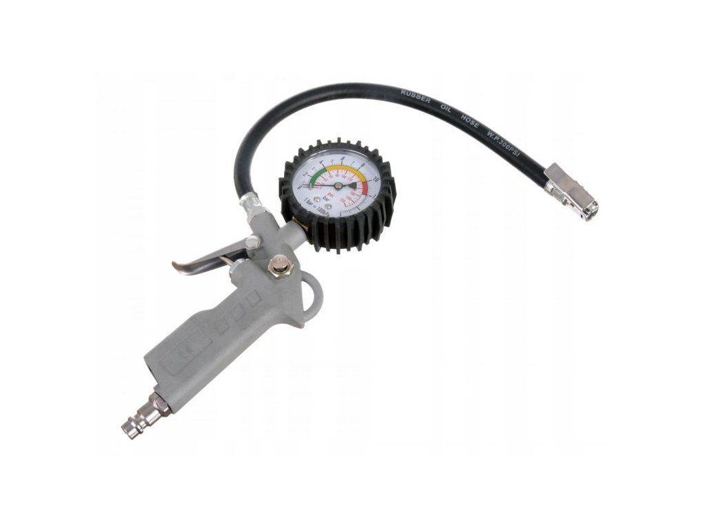 Pistolul pneumatic este folosit pentru pomparea roților cu valve auto standard. Este echipat cu un conector rapid standard utilizat în uneltele pneumatice europene. Barometrul este protejat cu un cauciuc combinat care îl protejează de deteriorare în cazul unei așezări neglijente.