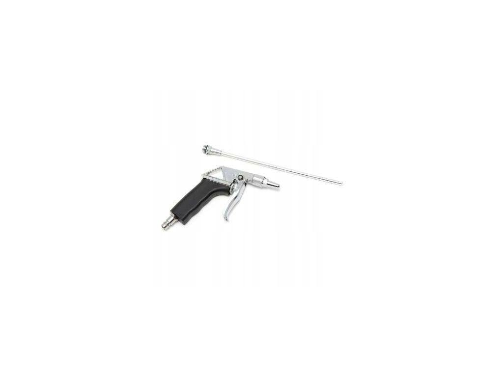 Pistol de suflare de înaltă calitate alimentat cu aer comprimat. Această unealtă este o parte esențială a echipamentului din orice garaj, atelier sau service. Pistolul ne ajută să direcționăm un jet concentrat de aer comprimat exact în locul unde este necesar și dorit. Mânerul corespunzător și trăgaciul permit utilizarea confortabilă chiar și în spații înguste. Setul include 2 extensii pentru locuri greu accesibile și 2 conexiuni. În funcție de instalația instalată, producătorul permite conectarea pistolului la conducta prin racord rapid 1/4" sau montarea furtunului pentru conexiune și asigurarea cu un clips. Una dintre conexiuni trebuie să fie legată de pistol folosind filetele pregătite și bandă de teflon. Pistolul este echipat cu un racord rapid standard de tip masculină utilizată în uneltele pneumatice europene.