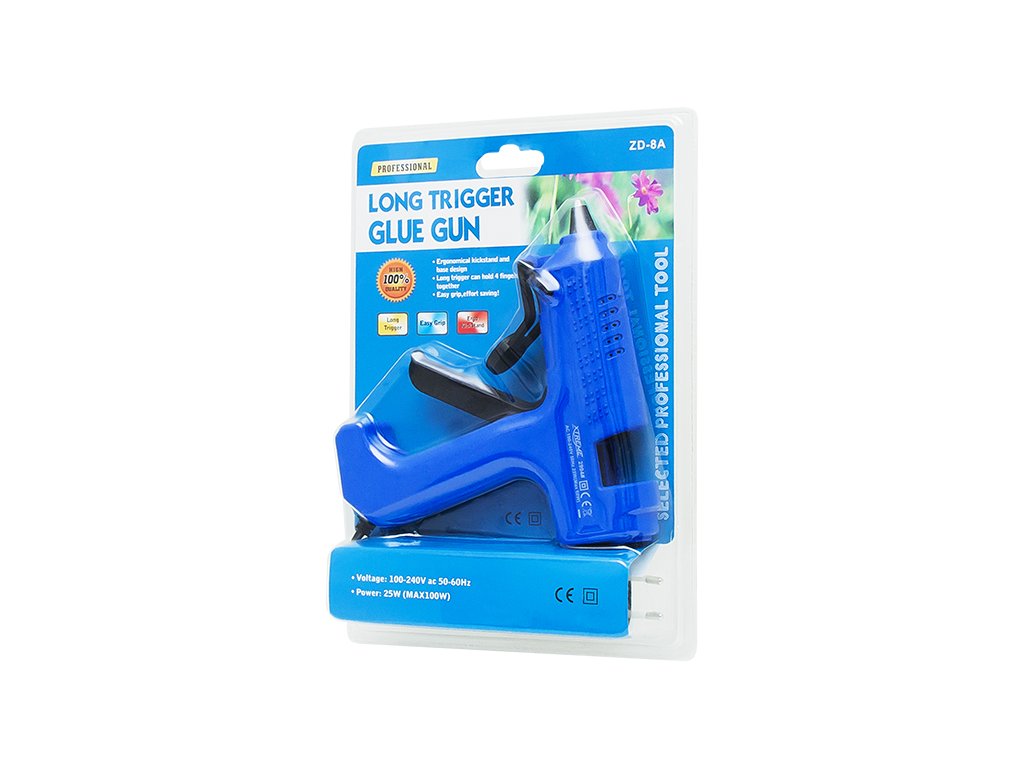 Pistol/pistol de lipit pentru adeziv monocomponent solubil la temperatură. Cu ajutorul pistolului și al adezivului termic, puteți lipi lemn, sticlă, ceramică, metal, plastic și multe alte lucruri. Pistolul de lipit este indispensabil pentru hobby-uri, lucrări decorative etc.