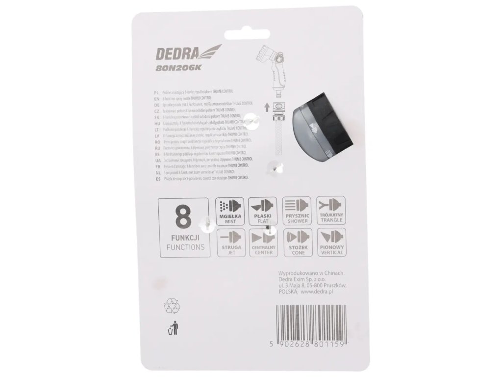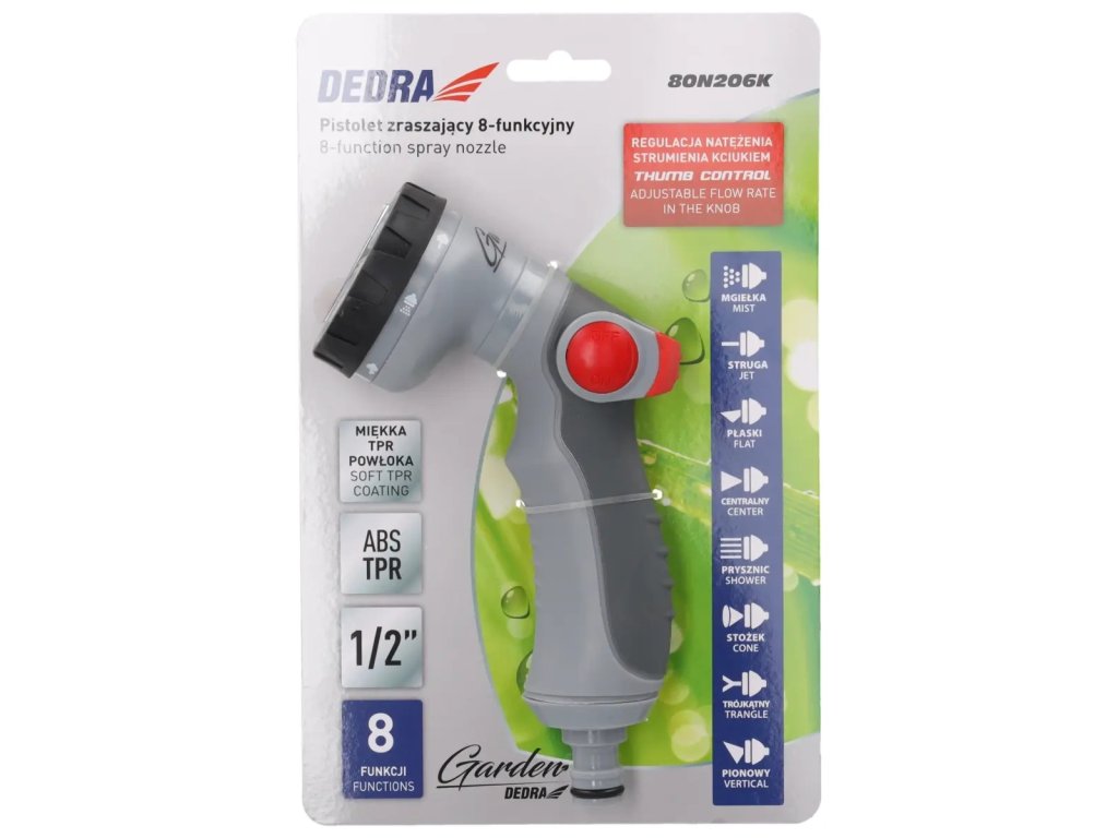 Pistolă de stropit cu 8 funcții controlată cu degetul mare THUMB CONTROL 80N206K