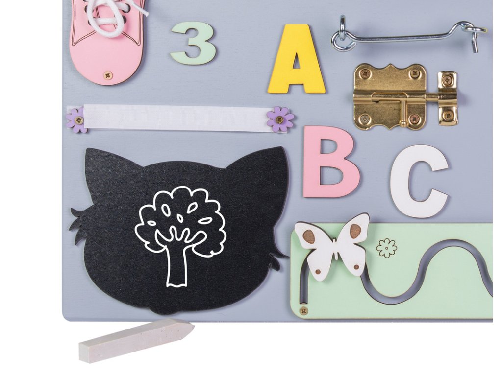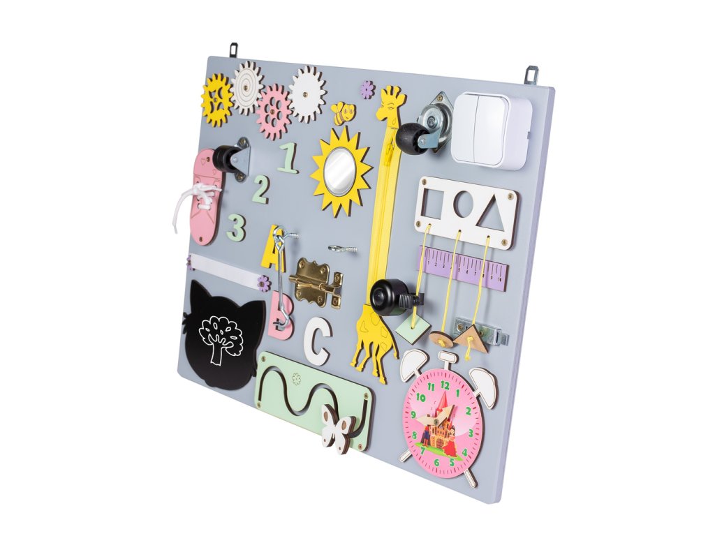 PLACĂ DE ACTIVITĂȚI SENZORIALĂ DIN LEMN 50X37,5CMO jucărie care oferă o dezvoltare corectă și garantează distracție super Este chiar posibil Cu siguranță! Iar plăcile de activități sunt dovada acestui lucru!