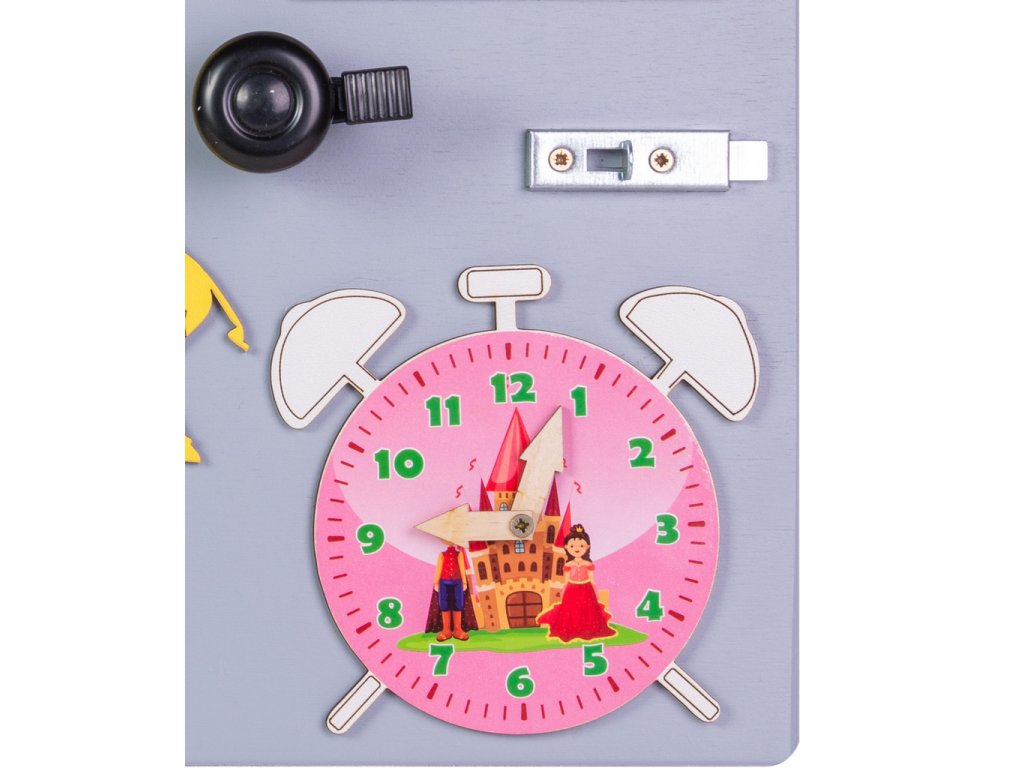 Placă de manipulare din lemn cu ceasuri roz 50x37,5cm