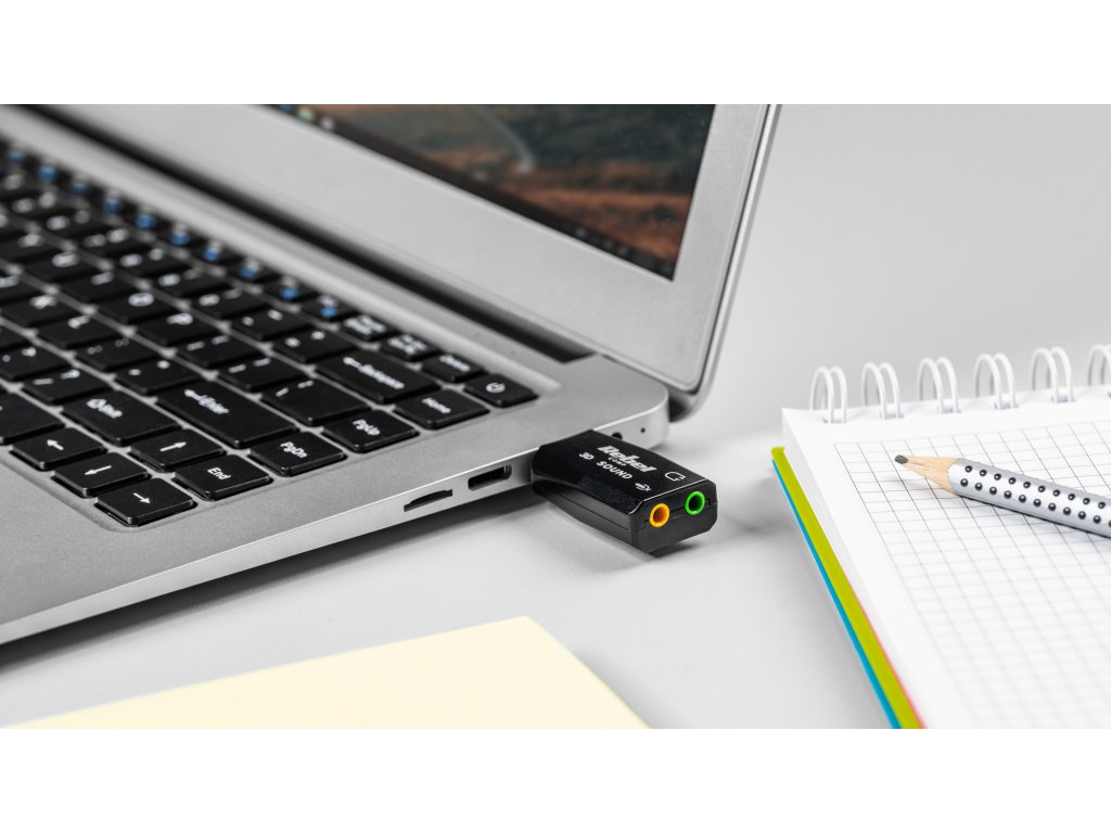 Calculatorul sau laptopul dumneavoastră nu are o placă de sunet integrată sau este deteriorată Placa de sunet externă USB din seria Rebel Comp este soluția perfectă pentru dumneavoastră! Cu două ieșiri vă permite să conectați și căști sau un microfon. De asemenea, merită menționat că acest accesoriu suportă 3D Sound și Virtual 5.1 Sound, ceea ce înseamnă calitate ridicată a sunetului.