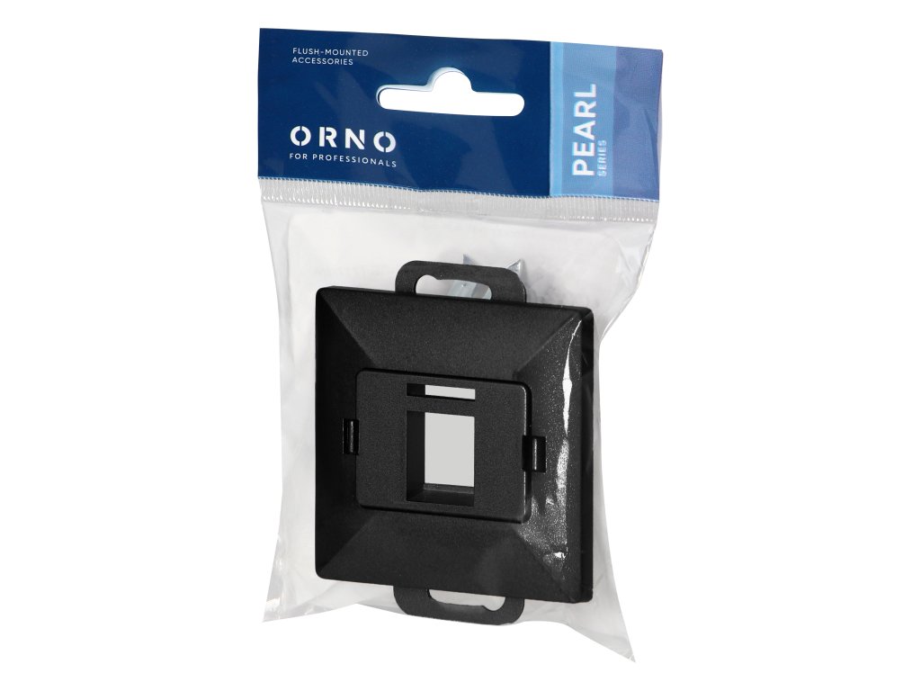 Placă frontală + Priză simplă tel-comp. RJ-45 Pearl, PC+ARJ45/P1, negru