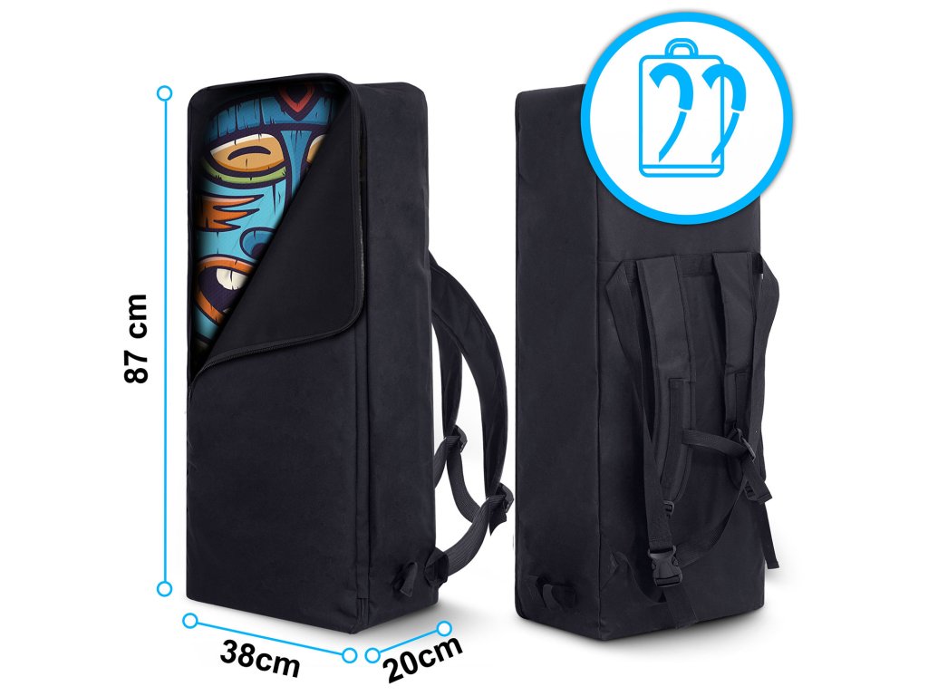 Dimensiunile compacte de 87 × 38 × 20 cm fac ca rucsacul să încapă perfect placa SUP și toate accesoriile, fără a ocupa spațiu inutil.