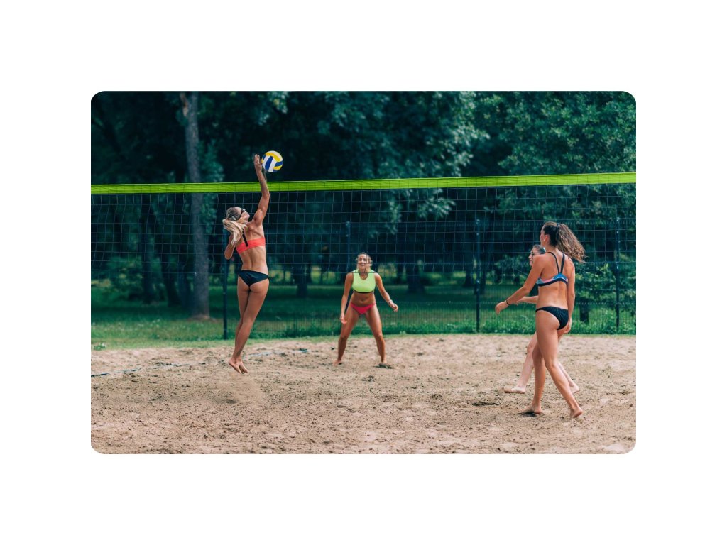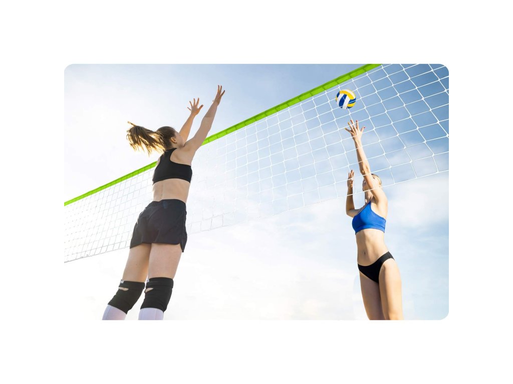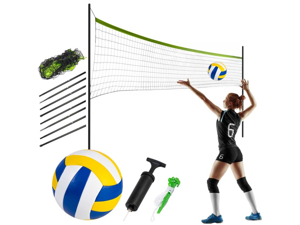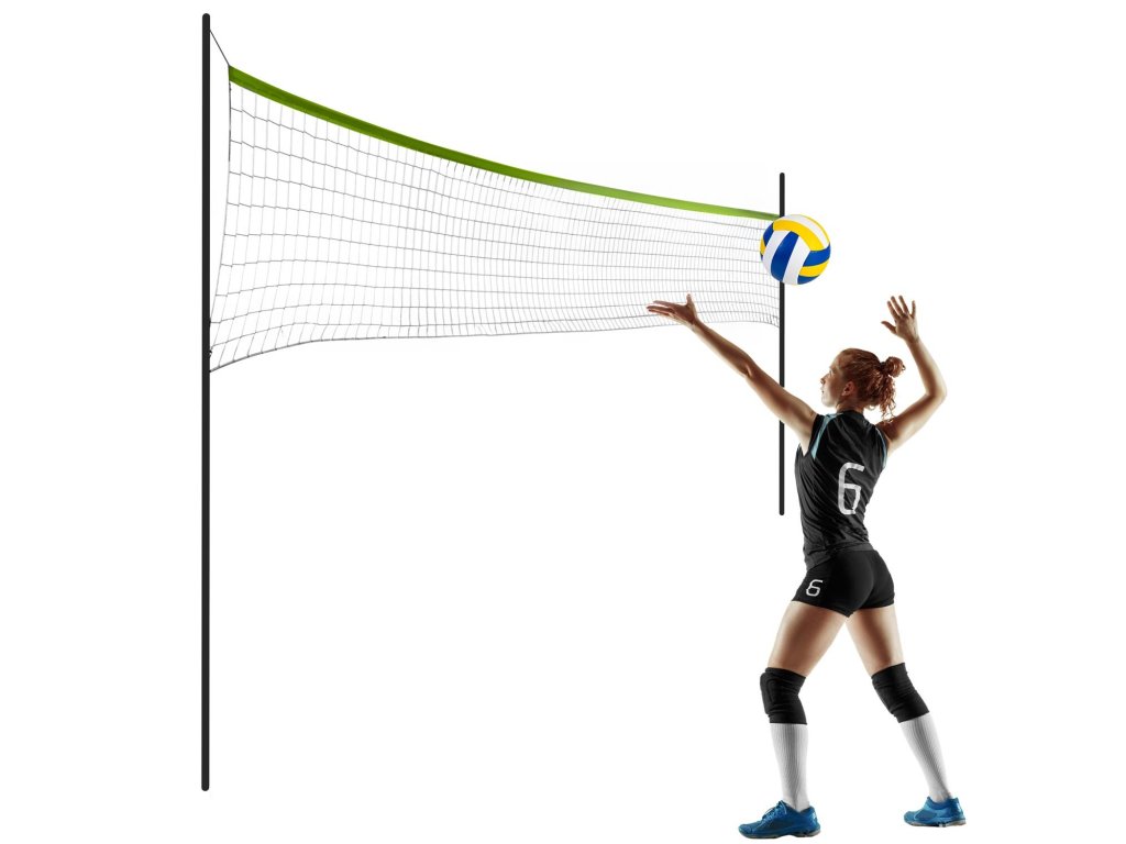 Înălțimea reglabilă a stâlpilor permite să joci volei și badminton.