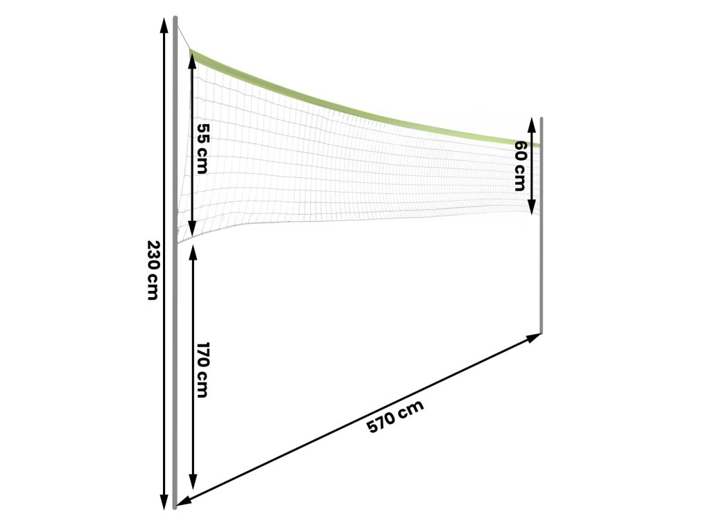 - Rețea solidă cu cadru de dimensiuni 230 x 570 cm.