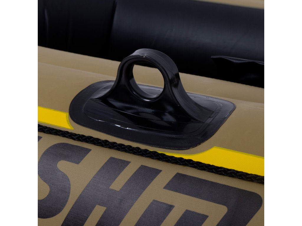 Barca pneumatică Fishman este echipată cu suplimente practice care cresc confortul și funcționalitatea. Frânghia de-a lungul circumferinței facilitează acostarea și menținerea bărcii în timpul urcării. Două suporturi pentru undițe permit pescuitul fără a fi necesară ținerea constantă a echipamentului. Setul include, de asemenea, o pompă manuală ce asigură umflarea rapidă și ușoară, o geantă pentru obiecte mici și un petic de reparație pentru a fi pregătit pentru orice eventualitate.