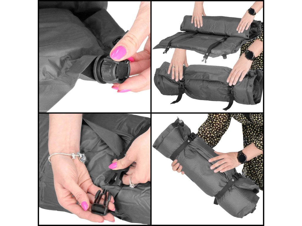 - Curele reglabile cu catarame cu capse - mențin salteaua într-o singură poziție după pliere