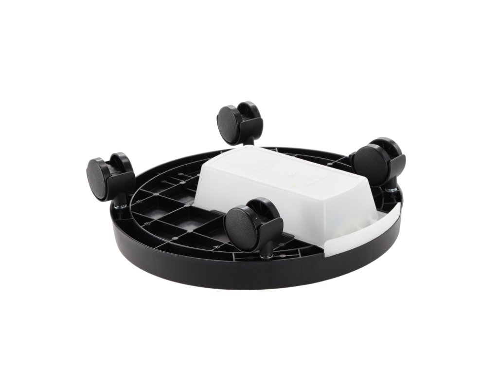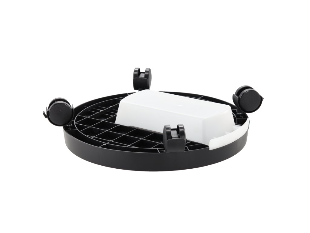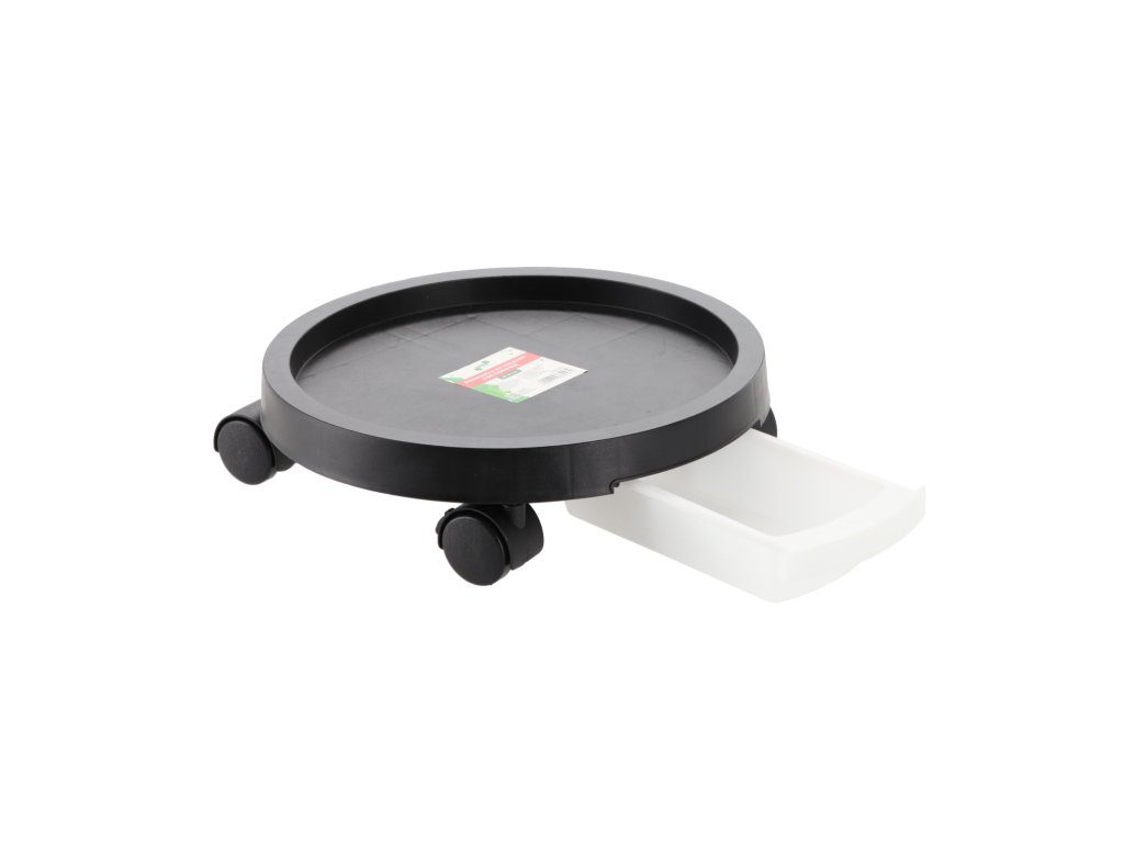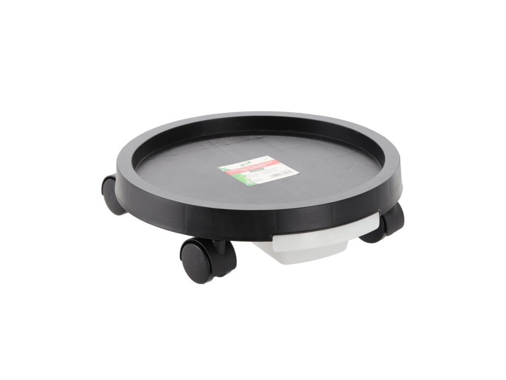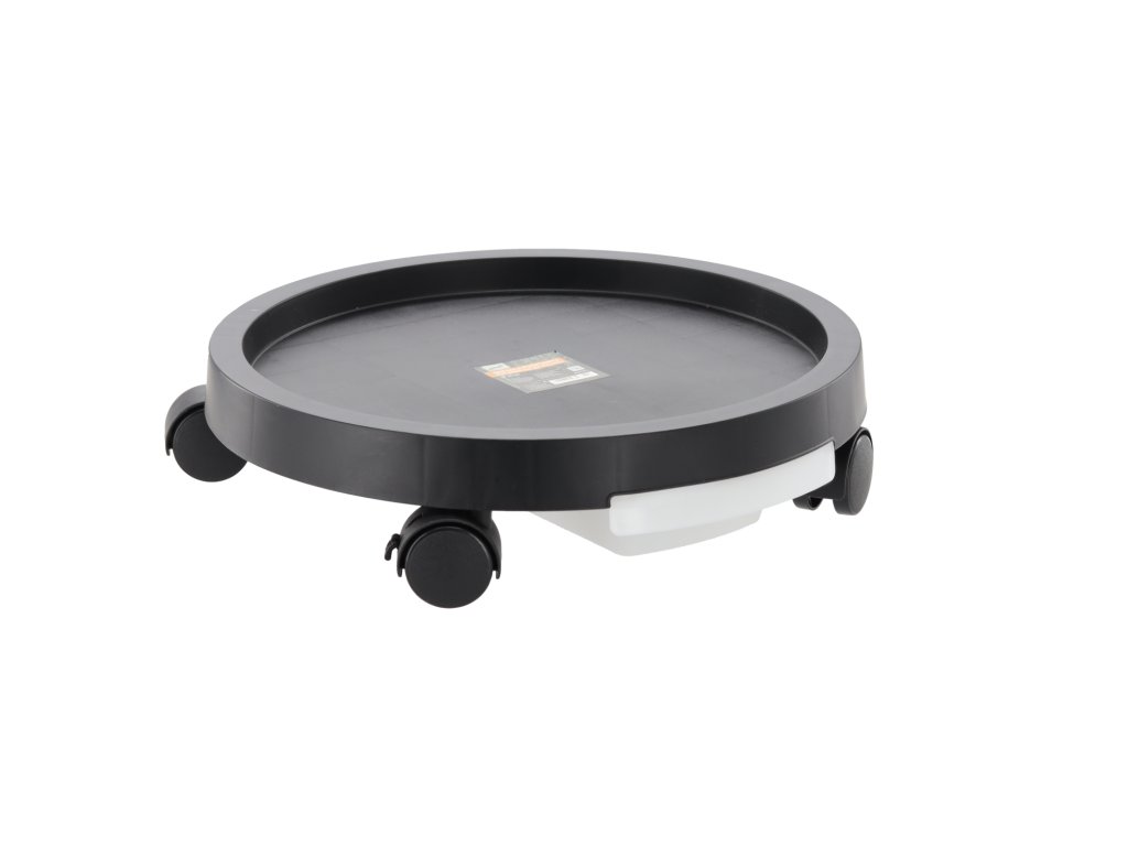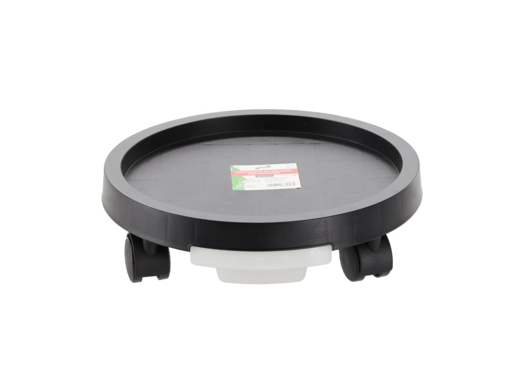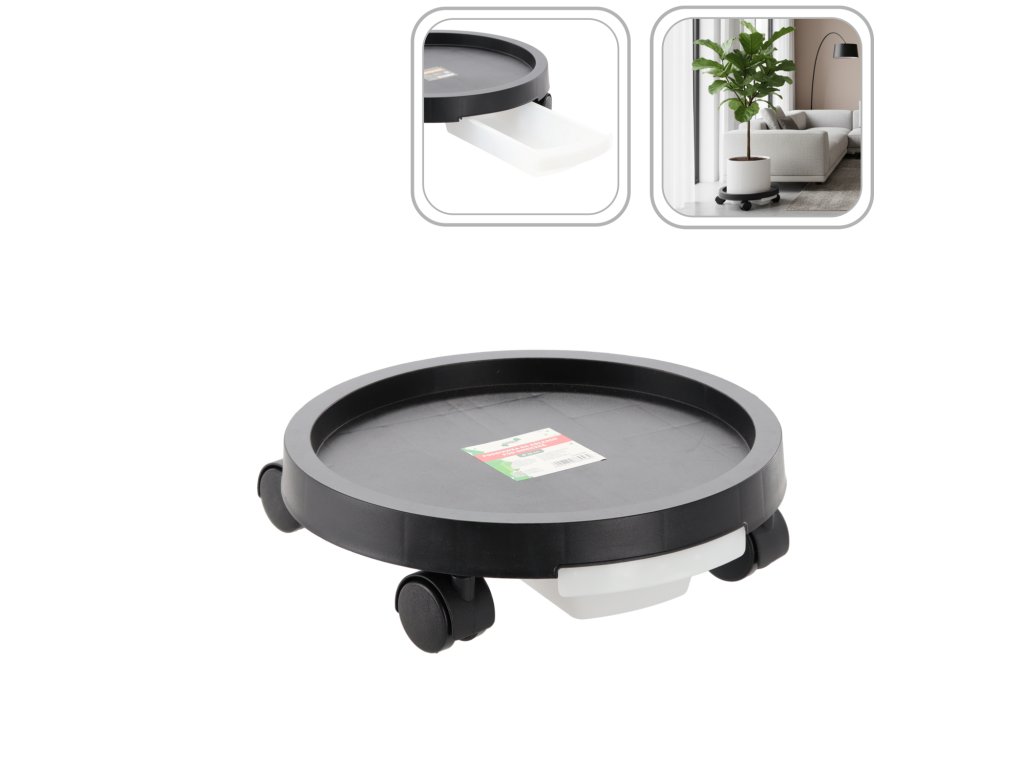 Suport practic pentru ghiveci dotat cu patru roți din nailon, care permit mutarea ușoară a plantei fără riscul deteriorării podelei. Este ideal pentru utilizare în interior, dar se poate folosi și pe balcon sau terasă. Suportul are un farfurie de scurgere care colectează apa în exces din ghiveci și protejează suprafața de umiditate. Roțile sunt ambalate separat și necesită asamblare.