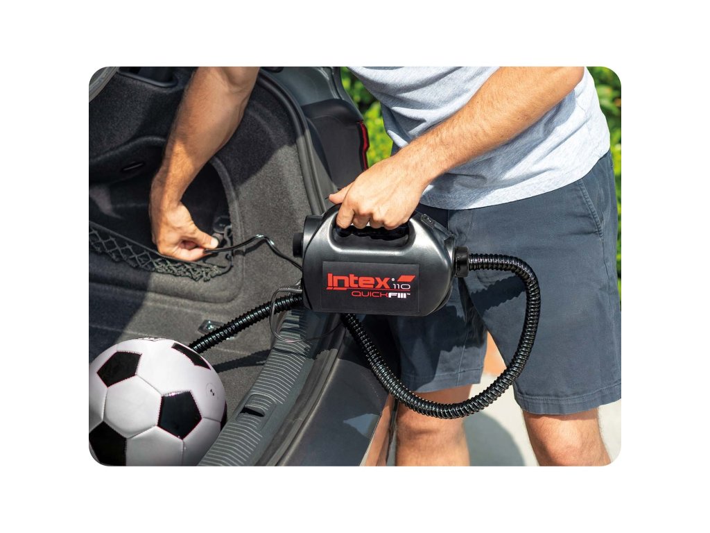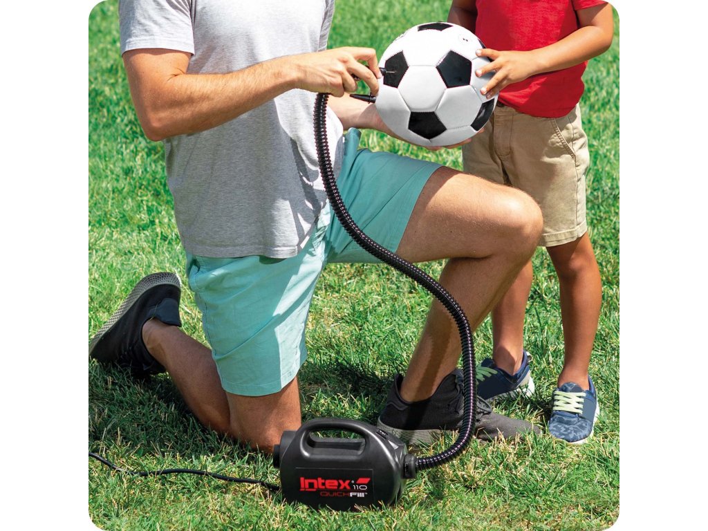 Această pompă electrică permite pregătirea rapidă a saltelei pentru utilizare și a mingii pentru joc.