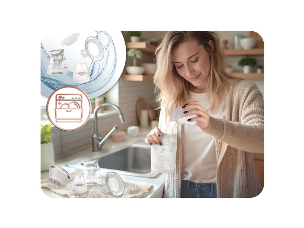 Sunetul blând emis de pompa de lapte în funcțiune nu perturbă somnul copilului și chiar poate să-l ajute să adoarmă, la fel ca acțiunea de supt și proprietățile laptelui matern.