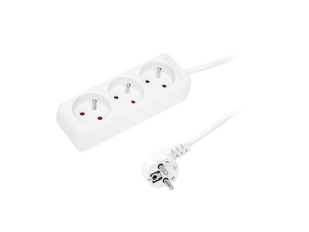 Cablu prelungitor PR-370P cu priză de rețea unghiulară și 3 prize cu împământare.