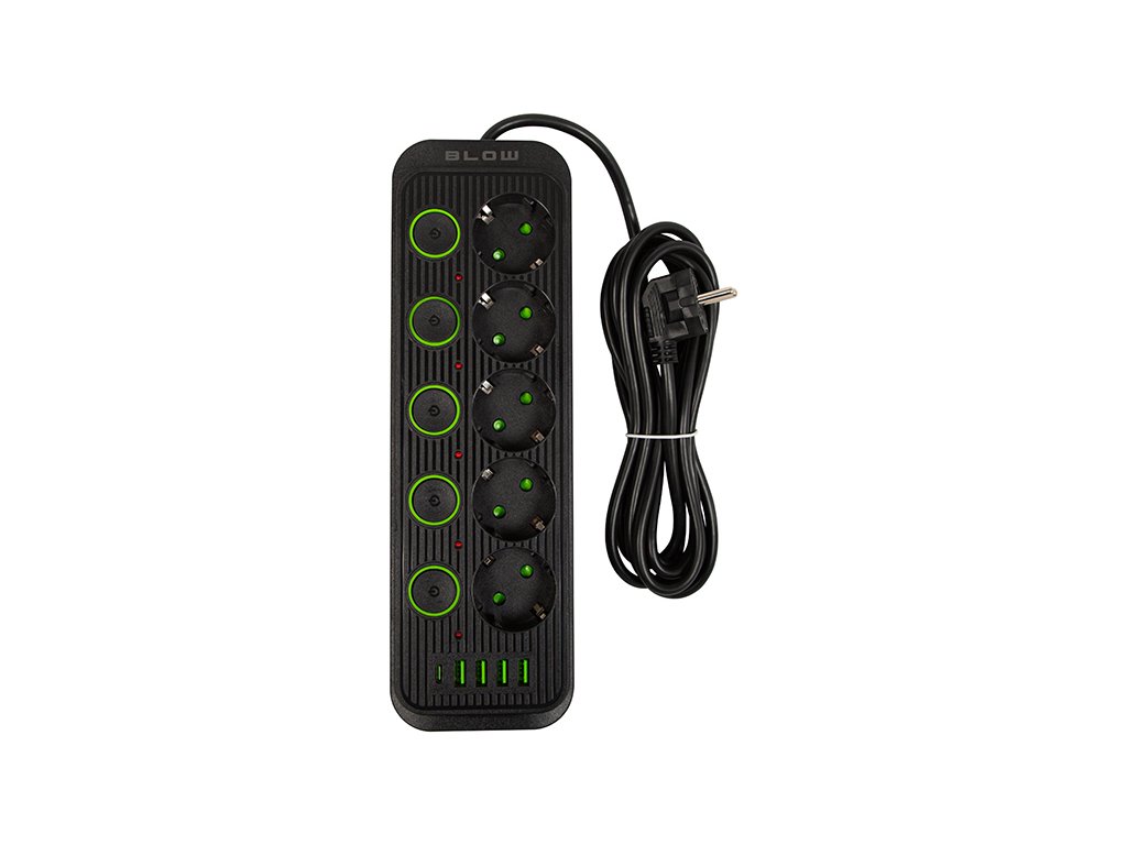 Vă prezentăm un modern prelungitor negru cu 5 prize și 4 porturi USB, ideal pentru orice locuință sau birou, unde este nevoie de o mai mare variabilitate și fiabilitate pentru alimentarea dispozitivelor dumneavoastră.