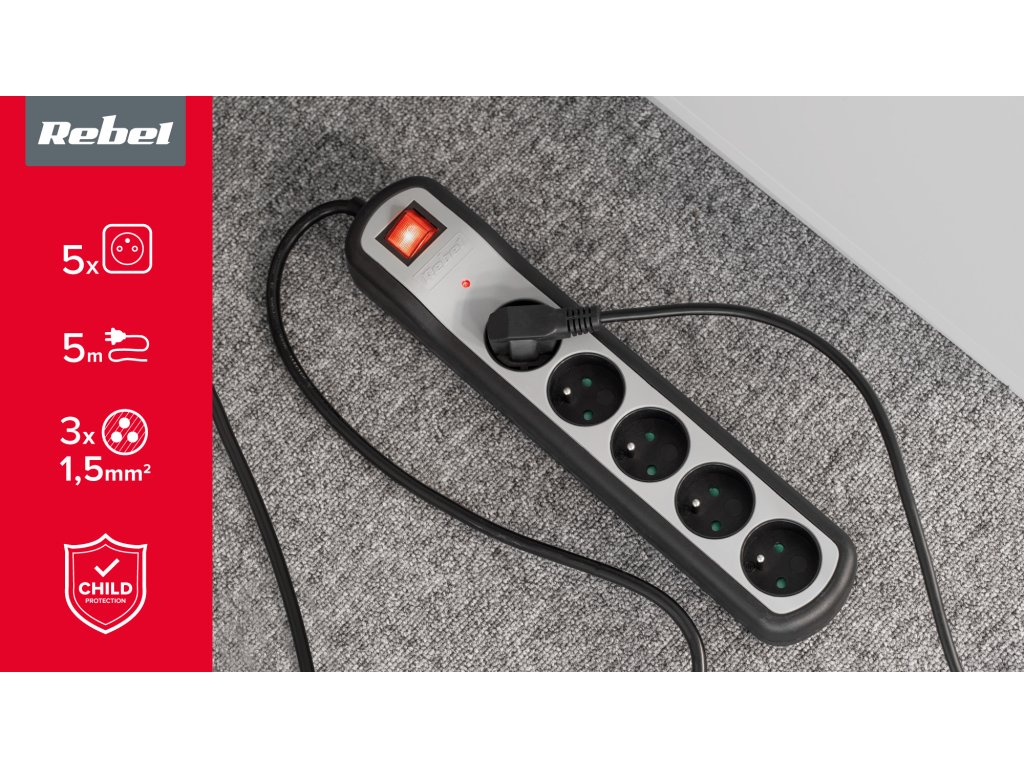 Banda de alimentare KEMOT cu întrerupător este o soluție sigură datorită celor 5 prize și a cablului de 5 m pentru conectarea diferitelor tipuri de dispozitive, de exemplu, la locul de muncă. Datorită acesteia, puteți conecta fără probleme un computer, o imprimantă sau un telefon. Dispozitivul are protecție pentru copii, protecție la supratensiuni și supraîncărcare, iar sarcina sa maximă este de 2 300 W. Banda de alimentare este realizată dintr-un material durabil, astfel încât vă va servi mult timp.