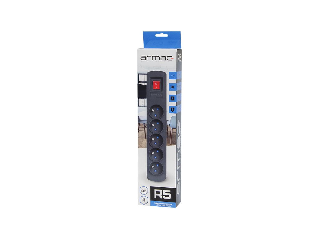 Filtrul de rețea R-5 are un sistem special de protecție împotriva scurtcircuitului și supratensiunii și o siguranță automată care asigură siguranță completă. Este compus din 5 prize cu împământare și capace de protecție.