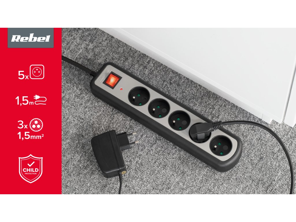 Banda de alimentare KEMOT cu întrerupător are 5 prize și un cablu de 1,5 m lungime și este o soluție sigură pentru conectarea diferitelor tipuri de dispozitive, de exemplu, acasă sau la locul de muncă. Cu ajutorul ei puteți conecta cu ușurință un calculator, imprimantă sau telefon. Dispozitivul are protecție pentru copii, protecție împotriva supratensiunii și suprasarcinii, iar sarcina sa maximă este de 2.300 W. Banda de alimentare este fabricată dintr-un material rezistent, așa că vă va servi pentru mult timp.