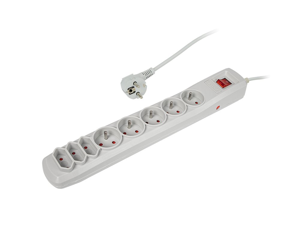 - 5 prize cu contact de protecție (10A/250V)